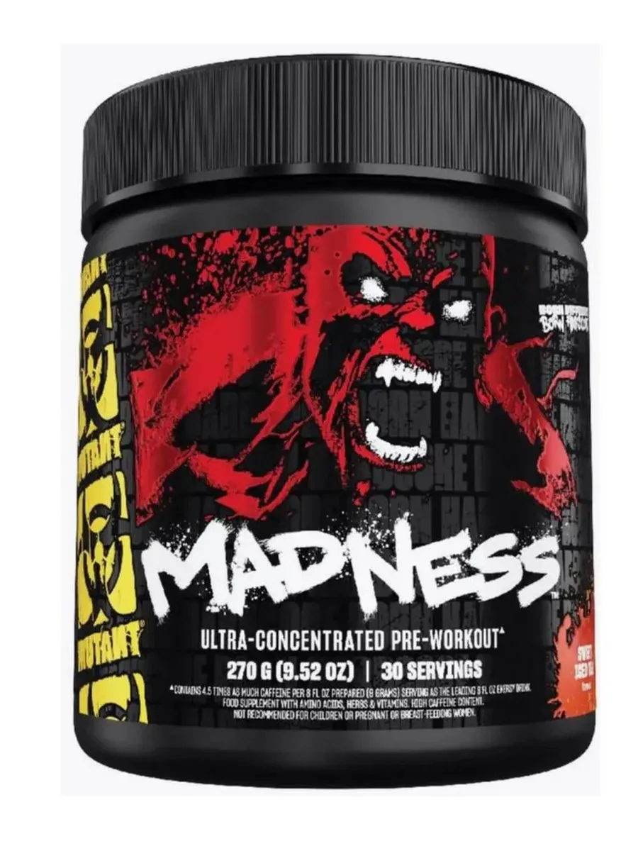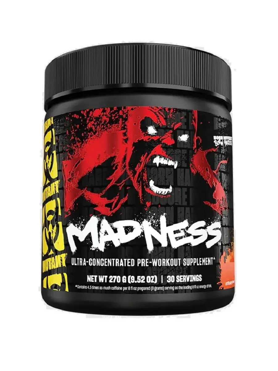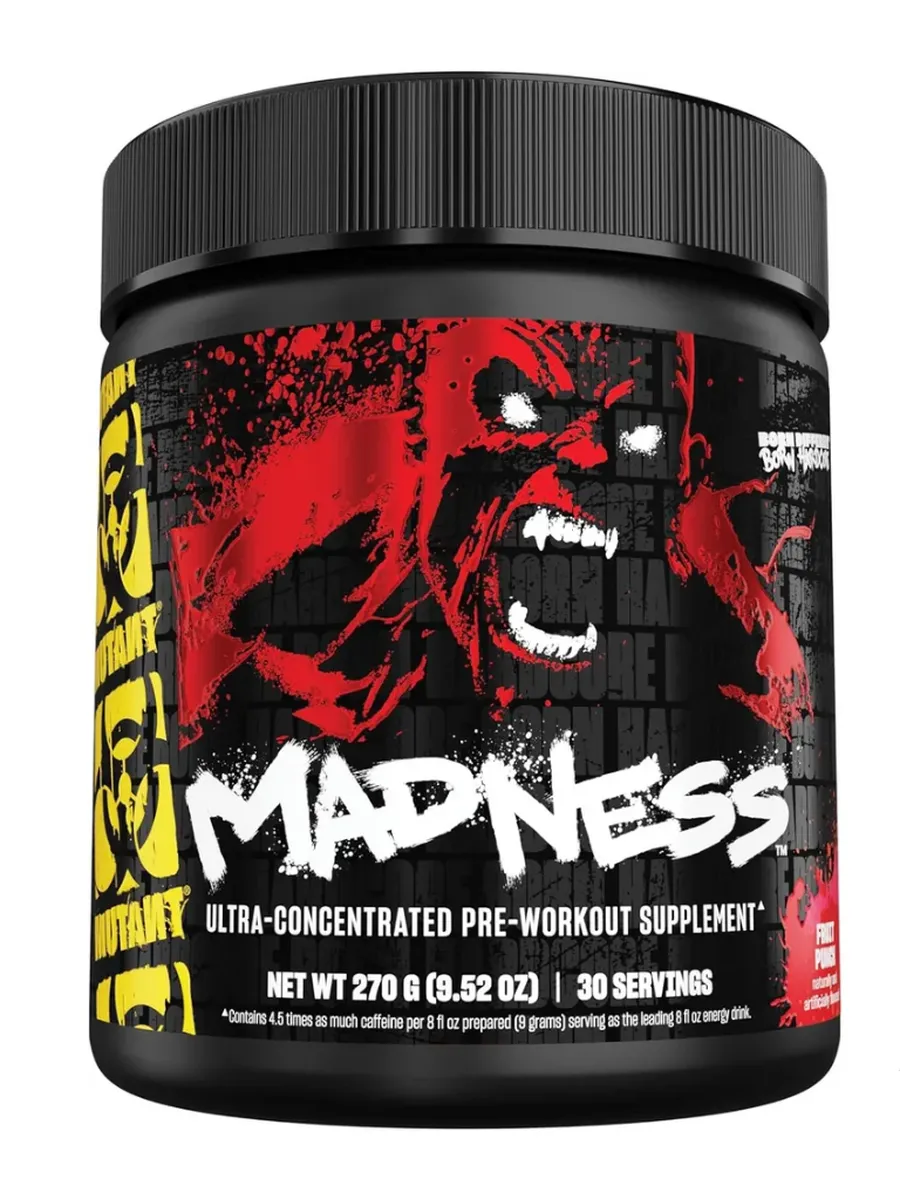 Mutant Madness PVL – высокоэффективный предтренировочный комплекс, прием которого способствует существенному повышению работоспособности и результативности спортсмена во время тренировок, а также его мотивации на улучшение своих силовых показателей.