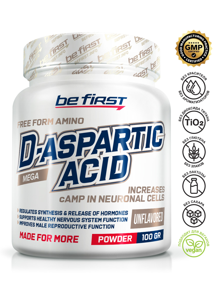 D-Aspartic Acid (DAA), или D-аспарагиновая кислота — это одна из аминокислот, присутствующих во всех живых организмах, но не участвующих в синтезе белка. Зато она играет важную роль в функционировании и развитии нервной системы. Д-аспарагиновая кислота выступает как нейромедиатор — посредник, переносящий нервные импульсы между клетками мозга. И еще выполняет много важных функций.