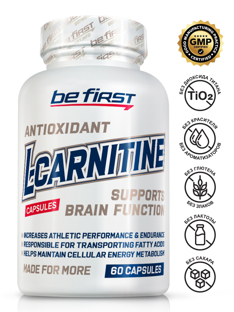 Продукт Be First L-Carnitine Capsules содержит 697 мг L-карнитина тартрат, который обладает наилучшей степенью усвоения организмом, благодаря присутствию в нём винной кислоты.
