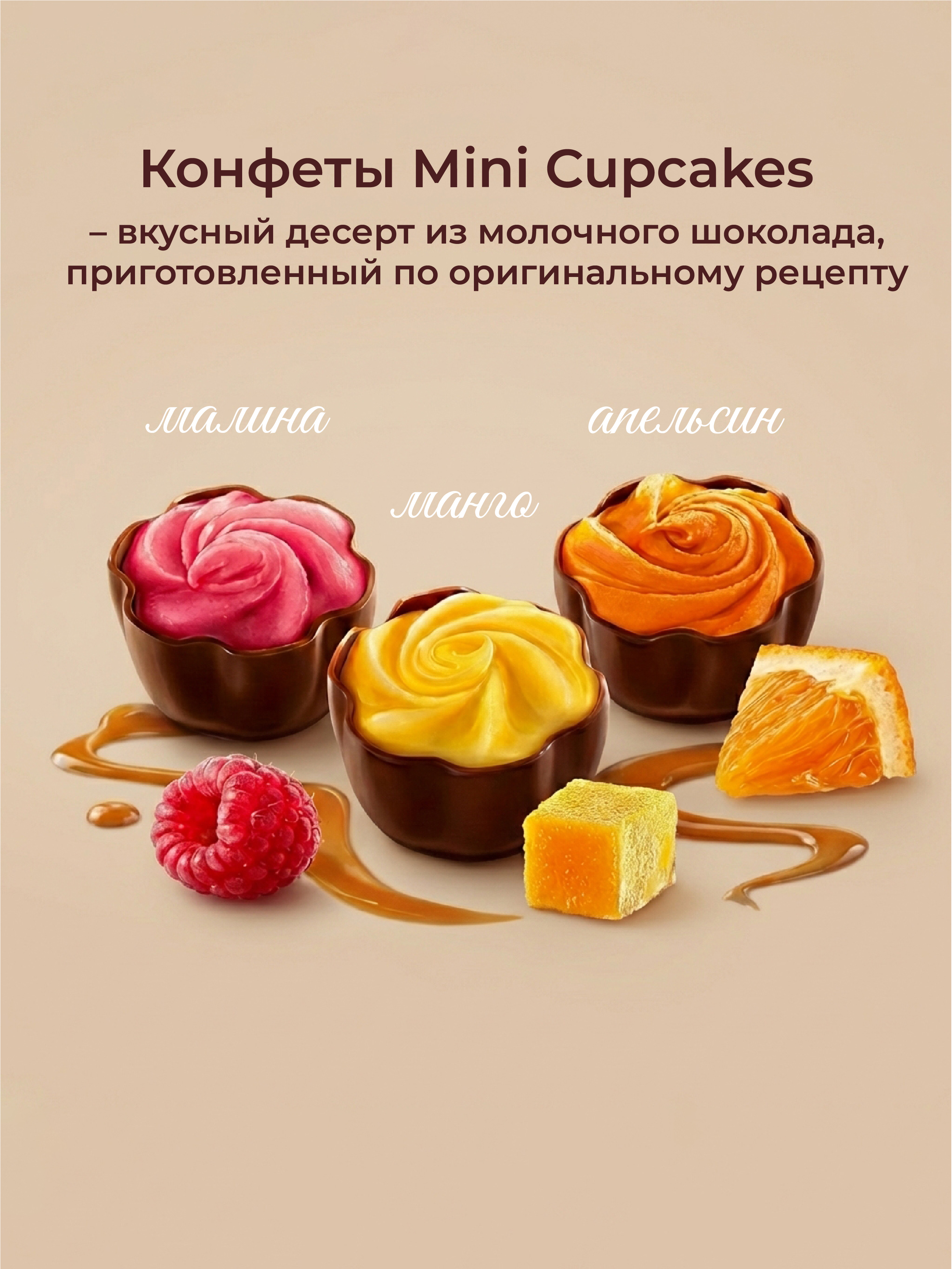 Конфеты Вдохновение Mini Cupcakes манго малина апельсин, 165 г